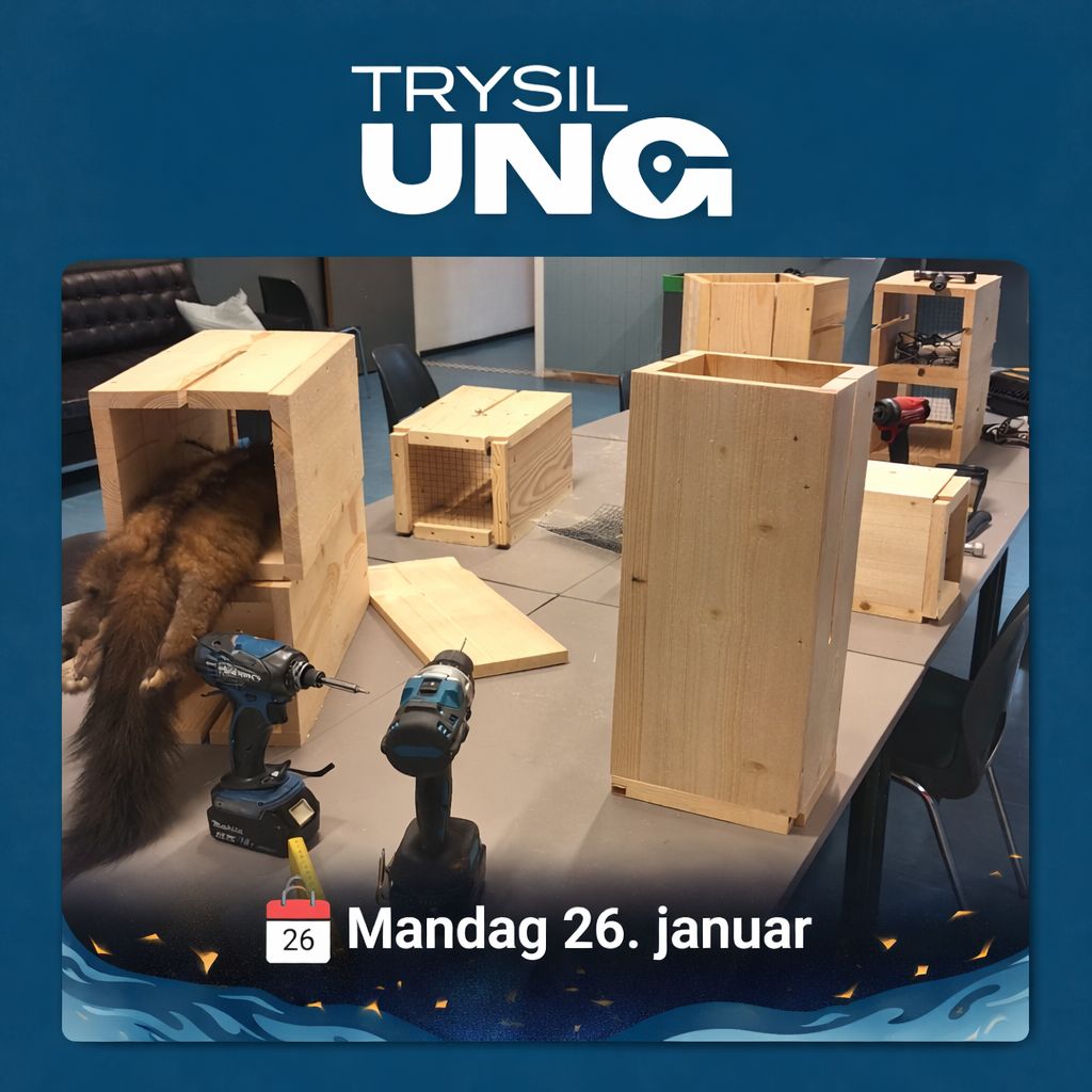 Velkommen til å bygge mårfeller med Trysil UNG ved /Jon Einar Nymoen og Thomas Hemstad mandag 26.01.26 på Ungdomsklubben